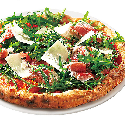 焼き立ての生地に、しっとりとした生ハムと新鮮なルーコラをふんだんにトッピングしました