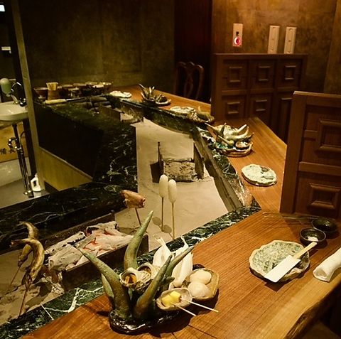 完全予約制の当店では、毎日新鮮な食材をご用意しております♪鮎や岩魚の炙り焼きに、焼き蟹、伊勢海老丸焼きなどで贅沢な演出もできます、ジビエも鹿肉や鴨、猪などと黒毛和牛や牛タンや名古屋コーチン、一色ウナギの白焼、ノドグロ桜干し、北海シシャモなど全国から取り寄せております。