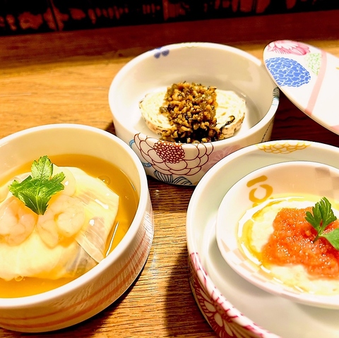 引揚げたばかりの生湯葉を使っており、黒大豆の生湯葉や緑大豆の生湯葉もお召し上がりいただけます。また、京野菜、京漬物など、京都ならではの食材もふんだんに使用しております。京都観光の際は是非、ご利用ください。