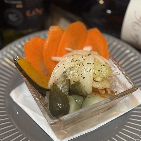 新鮮な野菜を使った創作料理が楽しめる当店は、特に女性に大人気◎素早く提供できるクイックメニューも自家製ピクルス&オリーブや葉生姜、エシャレットなどヘルシーな野菜をメインに豊富に取り揃えています。ヘルシーかつ美味しい料理を短時間でお楽しみいただけますので、忙しい日常の身体もサポートします。ぜひお試しください!
