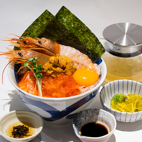 【新太郎の海鮮丼の楽しみ方】1.海苔で手巻き寿司 2.自家製醤油で海鮮丼 3.出汁をかけて茶漬け