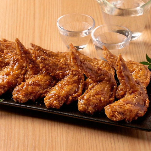 当店の鶏手羽先の唐揚げは秘伝の味!外はカリカリ、中はジューシーに揚げた手羽先に特製のたれを絡めてご提供します!【栄駅/居酒屋/個室/飲み放題/歓迎会/送別会/宴会/団体様/幹事様必見】