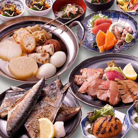 仙台名物の牛たんから、季節によって内容が変わるおばんざい盛りまで、宮城の素材を活かした幅広いラインナップのメニュー♪その他にもオープンから大人気のオリジナル唐揚げの「伊達チキ」や、とろとろになるまでじっくり煮込んだ「肉豆腐」など定番の居酒屋メニューも多数ご用意しております。季節の味わいを活かしたおすすめメニューも必見!