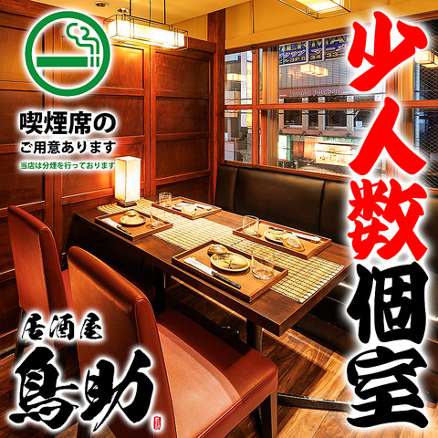 少人数様からゆったりお使いいただける完全個室を完備しております。雰囲気重視のおしゃれ個室でご宴会を!