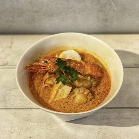 Laksaは食べた瞬間から幸せが口の中に広がる逸品です。SPUR Maruyamaが目指すポジティブなLifestyleの提案には欠かせないアイテムで、有頭の海老と北海道産の大きなホタテがアクセント。最後の最後まで飲み干してしまう一から手作りの海老スープはまさに絶品。