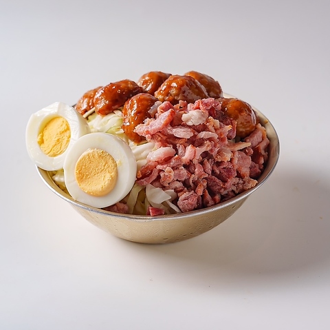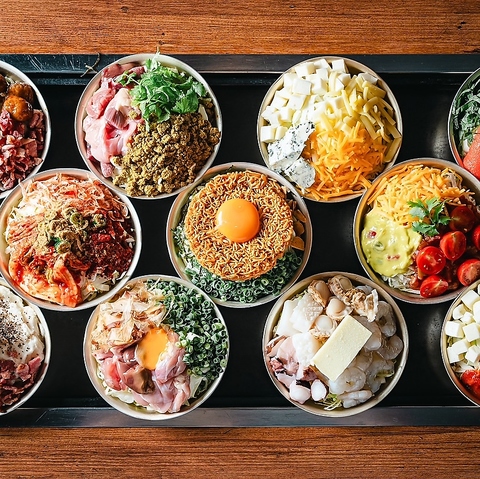 名物の鶏玉ネギだらけもんじゃ!見た目もボリューム満点で、2種類の食べ方で2度楽しめます!トッピングもチーズだけで6種類、食感を愉しむベビースターやアーモンドなんかも病みつきになること間違いなし!