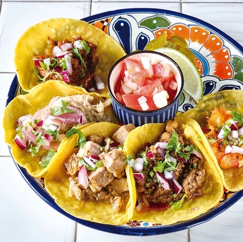 オーダーいただいてから焼き上げるタコスはしっとりもちもち◎お好きな具材を選んで卓上のソースやサルサ等で辛さを調節してお召し上がりください