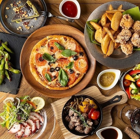 当店では、しっかりとしたお食事だけでなく、ちょっとしたお集まりや、お仕事帰りの「チョイ飲み」などにもぴったりのアラカルトメニューを豊富に取り揃えております。こだわりの食材を使用した逸品料理をはじめ、本格的なピザやパスタもご用意しておりますので、お酒のお供に、また軽いお食事として、どうぞお気軽にご利用ください。