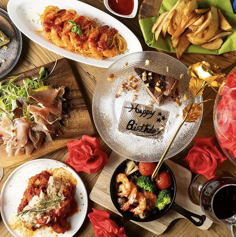 【デザート付&2時間飲み放題】女子会やデートに最適なお得プラン!シェフのお任せパスタや皮付きフライドポテト、さらに食後のデザートまで付いているので、満足度も◎。大切な人との思い出に残る素敵な時間をお過ごしください。(女性3,300円/男性4,400円)