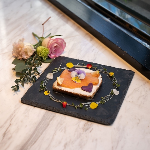 ライ麦パンを使用した体に優しいオープンサンドです。フルーツとクリームチーズで程よい甘さになっております。