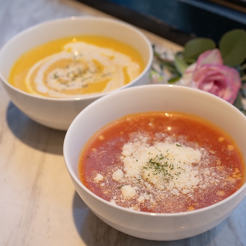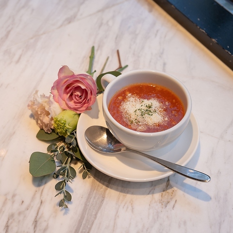 トマトと野菜の旨みがギュッと入った、体に優しいスープリゾットです。濃厚チーズとの相性抜群です。
