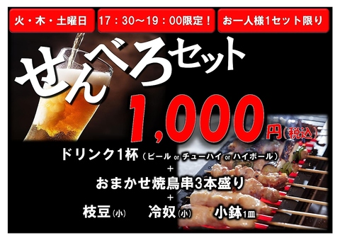 【火・木・土曜日17:30~19:00限定!】せんべろセット