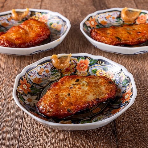 脂の乗った大トロイワシを丁寧に炭火で焼き上げました。表面はパリッと、中はふっくらとした食感。原始焼きならではの香ばしさと旨味を存分に堪能できます。旬の味覚をお酒とともにお楽しみください。