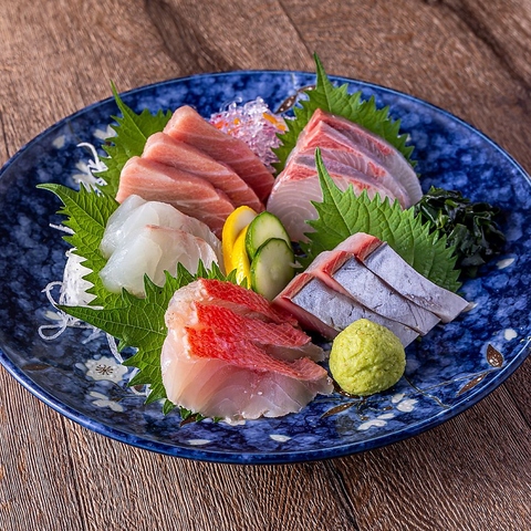 旬の鮮魚を贅沢に盛り合わせた村木屋自慢の一皿。鮮度抜群の魚の素材本来の旨味を引き出します。彩り豊かで華やかな盛り付けは宴会や接待にも最適。日本酒との相性も抜群です。