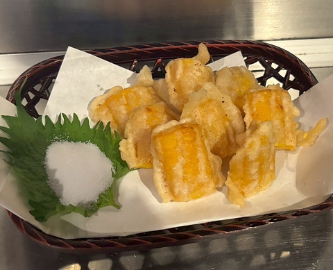 函館でとれたての真イカを、贅沢にも丸ごと沖漬けでご提供! 鮮度抜群のイカは、日本酒との相性も抜群です。 イカの肝を使った特製肝醤油もご用意。 沖漬けの旨みをさらに引き立てます。 函館の味を、ぜひご堪能ください♪