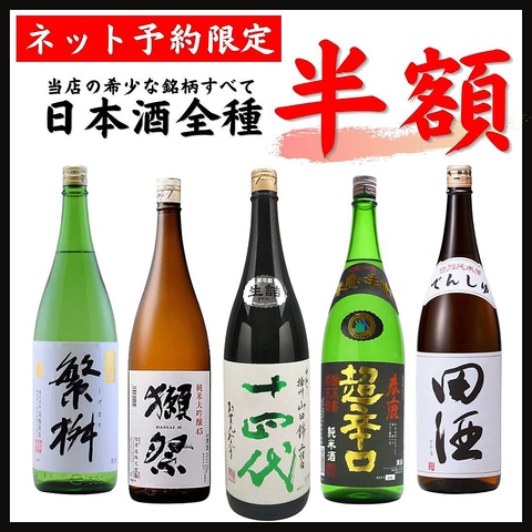 ネット予約されたお客様は、平日限定で当店の日本酒を全銘柄【半額】でご利用可能。詳細はクーポンページへ