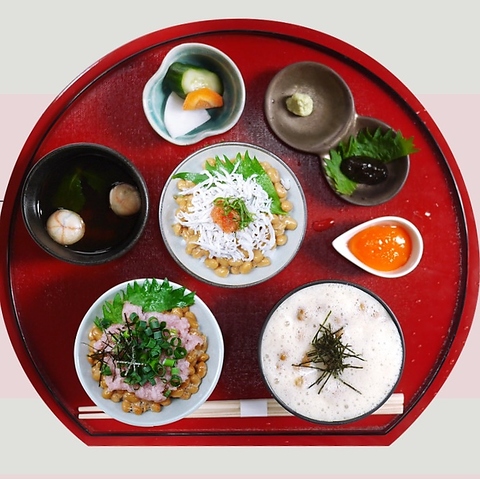 発酵食品の代表 納豆 相性の良い副菜を多数使用『身体が喜ぶ』プレミアムな御膳に。新しい 納豆料理 との出会に美味しい驚きと感動を。