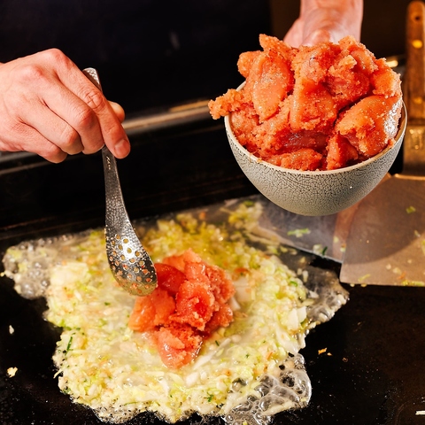 好きなものを、好きなだけ―。「アガる明太子」「沼るチーズ」は、背徳感たっぷりの“放題系”メニュー!!さらに、紅ズワイガニを豪快にのせたかにもんじゃ、あん肝×牡蠣×海老の海鮮トリプル鉄板焼き、一枚で二度うまい食欲倍増の豚天、チーズあふれる沼る玉子焼き、〆には熱々の鉄板焼きラーメンまで多彩にラインナップ。