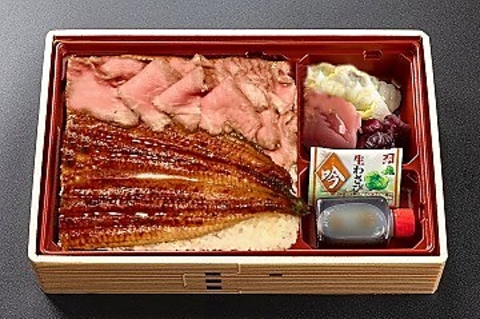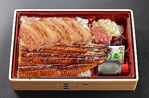 鰻(半身)と炙り鴨ロース肉の贅沢重厳選した美味しいこだわりの鴨肉を使用しています。