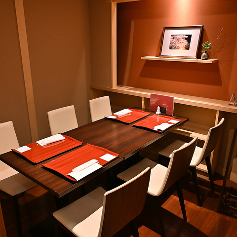 室内のインテリアにも心砕いた個室は、落ち着いた雰囲気で接待など特別な日のご利用にもおすすめ。ゆっくりと会話や料理に舌鼓いただけます。