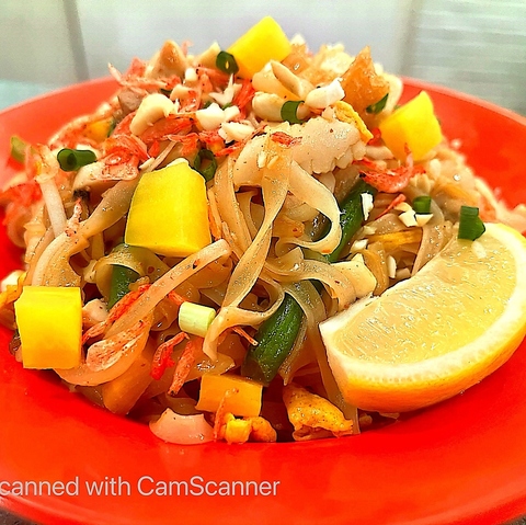 ディナータイムのみの海鮮パッタイは、えびやいか、あさりなど回線をふんだんに使っています!甘酸っぱい味付けで食べやすいメニューです!アラカルトでもコースでもお召し上がりいただけます◎
