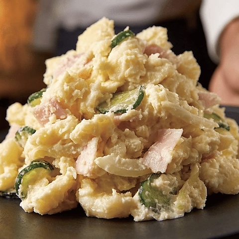 お通しに!北海道十勝産の厳選された「きたあかり」のみを使用。栗のような強い甘み、ホクホク感、黄金のような黄色い果肉を是非お確かめください。きたあかりのあま味とホクホク感を堪能できるシンプルかつ王道のポテトサラダに仕上げました。