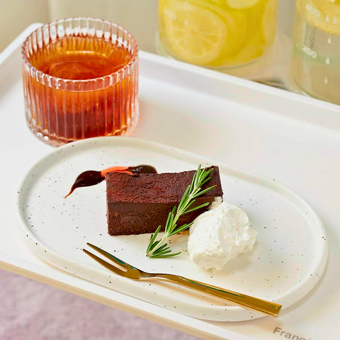 ベネズエラ産カカオ豆が香るBean to Bar Chocolateを使用し、濃厚でねっとりとした食感と、深入りしたナッツのような香りが楽しめるショコラテリーヌです。チョコレートをふんだんに使用したこだわりの濃厚なショコラ生地を焼き上げました。アールグレイアイスティー付きです。