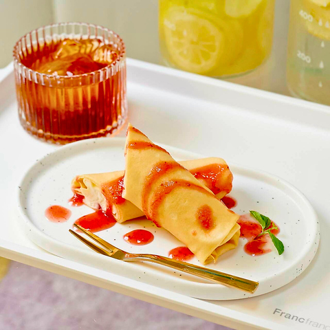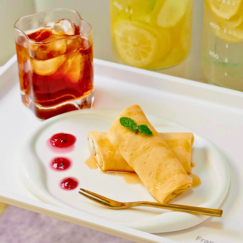 ふっくら生地でアーモンドホイップを包んだクレープです。アールグレイアイスティー付きです。