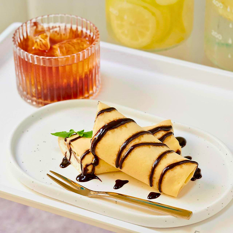 ふっくら生地でチョコレートホイップを包んだクレープです。アールグレイアイスティー付きです。