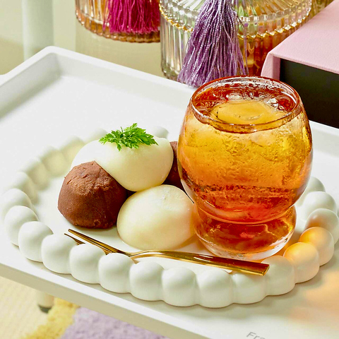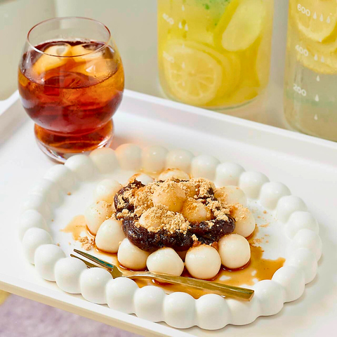 もち米の風味を生かしたなめらかでモチモチ感のある白玉です。アールグレイアイスティー付きです。※新月と満月の日に数量限定でご提供しております。