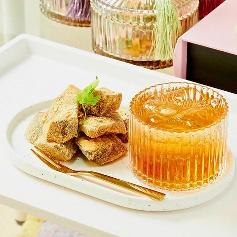 国産本格抹茶の風味と柔らかい食感の生地がマッチング。本わらび粉を使用。アールグレイアイスティー付きです。※新月と満月の日に数量限定でご提供しております。