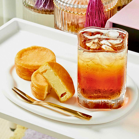 たっぷりのカスタードクリームをしっとりソフトな皮で包み食べやすく仕上げました。アールグレイアイスティー付きです。※新月と満月の日に数量限定でご提供しております。