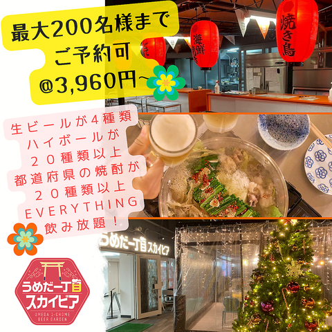 北海道から沖縄まで、各都道府県の焼酎を飲み放題でご用意。個性豊かな味わいを飲み比べながら、お好みの一杯を見つけてください。屋上の夜風とともに楽しむ贅沢な時間をお届けします。梅田/大阪駅/駅ビル/BBQ/焼肉/貸切/歓送迎会/屋上/宴会/ビアガーデン