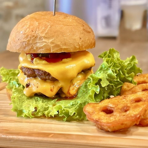 当店自慢のハンバーガーは、外国人のお客様にも大人気!なかでも上質な国産和牛を100%使用した「PREMIUM BURGER」は、当店のもう一つの看板メニュー☆ジューシーな肉の旨味が口いっぱいに広がる、贅沢な味わいをぜひご堪能ください。その他にも、定番から変わり種まで全14種類のハンバーガーメニューをご用意。