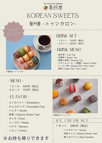 韓国スイーツ【トゥンカロン】もお持ち帰りOK