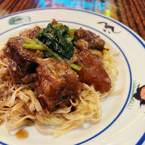濃厚に煮込まれた牛すじとバラ肉を、コシのある太麺「粗麺」と絡めていただく汁なし麺。肉の旨味が凝縮されたタレが麺一本一本に絡みつき、噛むほどに深い味わいが広がります。食べ応えを求める方にイチオシ。