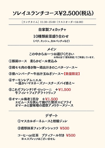 キッチンsoleil ソレイユ ランチ 2026/04/01 更新