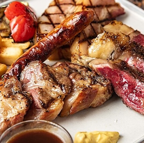 ビーフサーロイン スペイン産の生チョリソー、ガリシア栗豚、イベリコ豚ベーコンなどスペインを感じるお肉の盛り合わせ。※写真はイメージです。
