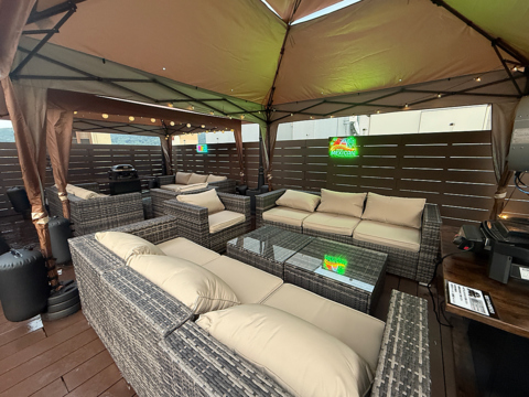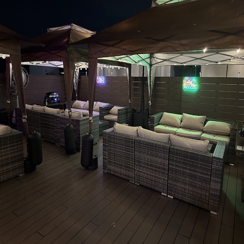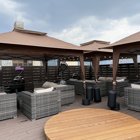 ※写真はイメージです。【ソファ席8名掛け×3テーブル】店内には2名様からご利用可能なソファ席をご用意。お昼は太陽を浴びながら、夜は夜景を楽しみながら、開放的な空間でお酒とお肉をご堪能あれ!季節に合わせてパラソル・タープテント・こたつドームに様変わり◎