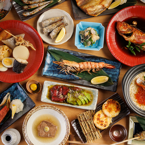 お席のみのご予約、多彩なコースなどお客様のご利用シーンやご予算にあわせてお選びいただけます。囲炉裏を囲うカウンターで旬な魚の焼けていく様子もお楽しみいただけます。