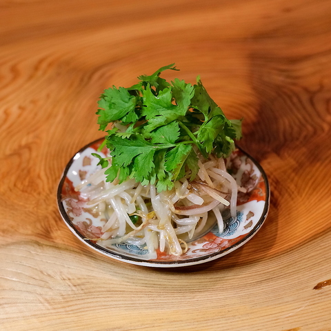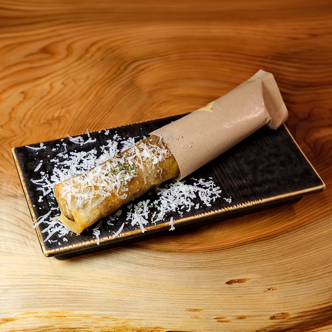 「わら焼きカツオのたたき」は、藁を燃やす瞬間的な高火力で表面を香ばしく焼き上げ、中はしっとりとした旨みを閉じ込める、酒場 獅酔陀ならではの逸品です。藁独特の芳ばしい香りがカツオの濃厚な旨みと重なり合い、口に含んだ瞬間に広がる風味は格別。立ちのぼる香りや音も、カウンター席ではその臨場感を間近に感じることができます。