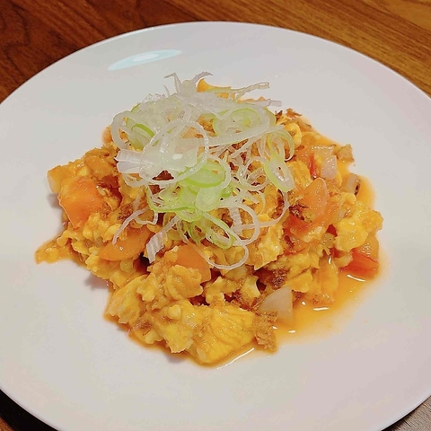 たっぷりトマトをふわトロ卵でやさしく包んでいます。ちょっと甘めの味付けでお子様にも人気!