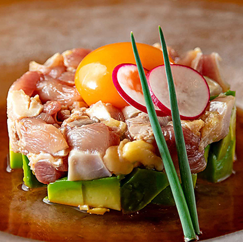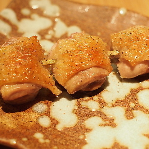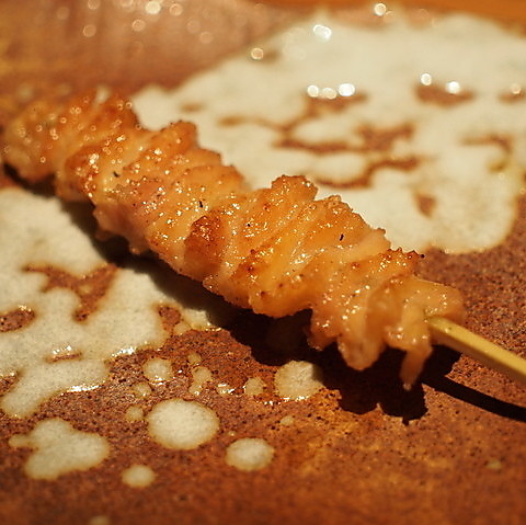 比内地鳥の串焼は、入手困難な土佐備長炭を使用し、熟練の焼師が一本一本丁寧に焼き上げています。炭の香ばしさが引き立ち、ジューシーな鶏肉の旨味を最大限に引き出すため、焼き加減にも細心の注意を払っています。店舗内で解体した新鮮な比内地鶏を使用しているため、希少部位はメニューに載らないことが多いですが、数量限定でご用意も!