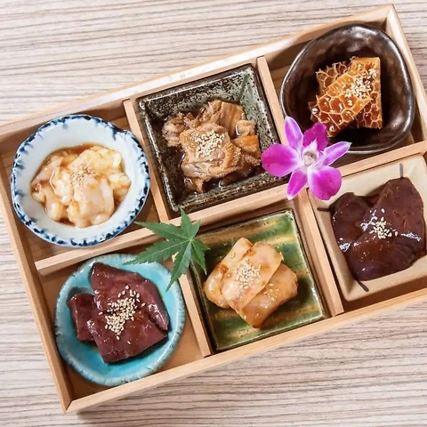 新鮮な食材を贅沢に使用したホルモン盛りは、ジューシーさと香ばしさが絶妙に融合した逸品!特に自慢の肉は、味わい深くどんなお酒とも相性抜群◎迷ったときは6種盛りが間違いなし♪アヒージョスタイルメニューも新鮮で見逃せません★コスパ良しのワンコインメニューでもお楽しみいただけます!