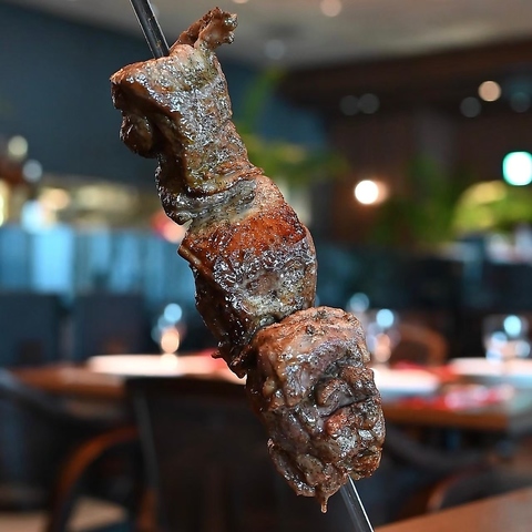 シュラスコ食べ放題★全20種類【味の違いを楽しめるバリエーションがウリ】★岩塩のみのシンプルな味付けや、オリジナルのスパイス・ハーブに付け込んだもの・特製の醤油ベースのソース、さっぱりとしたビネガー等、シュラスコの部位ごと絶妙な焼き加減でご提供。『シュラスコレストランALEGRIA』でブラジル料理のシュラスコを堪能して下さい。