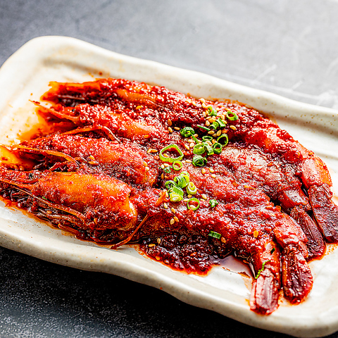 エビ大好きな方は必見!カンジャンケジャンと共に注文が多い赤エビのカンジャンセウジャン。そのままでも美味しいし、白ごはんの上に載せても美味しい!