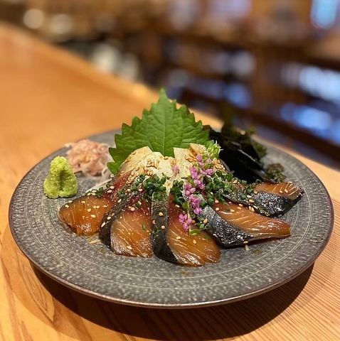 長浜市場の中でも最上級の天然の真鯖を使用しております!玄界灘でとれた天然の真鯖を贅沢にも分厚くカット!感動間違いなしの食感です!県外から福岡を訪れたお客様には必ず味わって頂きたい一品です!