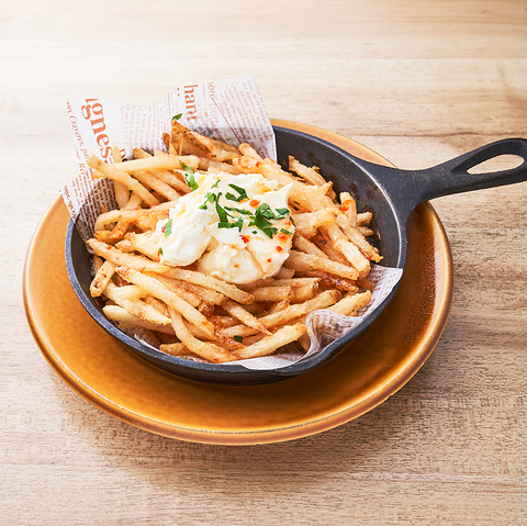 飲みのお供のポテトフライ!トリュフ塩をまとった絶品ポテトフライ。絶妙な塩加減がたまらない、トリュフ塩のうまみがおさけとの相性抜群です。その他にも、スイートチリ&マスカルポーネは甘辛な絶妙な味付け。ローデットポテトはお肉とソースたっぷりチーズのボリューム満点の逸品です。※ビッグサイズに+200円(税込)で変更可能です。