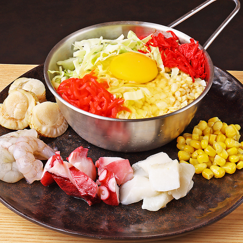 初めて月島もんじゃを体験されるお客様へ是非お召し上がりいただきたい”三九”お勧めコースです。国産最高品質の明太子を一腹使用した月島定番の明太子もんじゃを堪能できます。さらに、海鮮を特製バター醤油で味付けした鉄板と丹精こめたふわふわ生地のお好み焼きが味わえます。※こちらは系列店のメニューになります。
