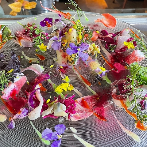 創作イタリア料理がランチやディナーで楽しめるコース料理をご用意しています。ディナーコースには、高級食材を贅沢に使用したコースもご用意しており、シェフの技が光る一皿をお楽しみいただけます。季節ごとの素材を活かし、見た目にも美しい料理を提供し、特別なひとときを演出しており、心を込めた料理をお届けいたします。